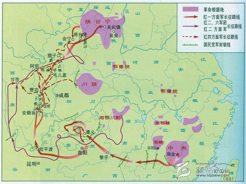 紅軍長征路線圖。