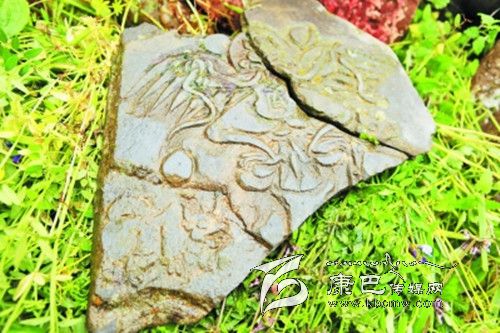 另外,今內(nèi)蒙古伊克昭盟伊金霍洛旗成吉思汗陵,供奉的“成吉思汗狩獵馬鞍”上,有二龍戲珠(“如意寶”由六顆海螺束成),其下面是大鵬金翅鳥護衛(wèi)牦牛圖形,這是典型的川西地區(qū)苯教圖案。2012年7月8日,調(diào)查小組一行在協(xié)德鄉(xiāng)古寺瑪尼堆中,也采集到大鵬金翅鳥護衛(wèi)牦牛的石刻(宋代)。9月28日在協(xié)德鄉(xiāng)雀兒村藏民擁措家看到一副馬鞍,其上也有類似的二龍戲珠、如意寶圖形。成吉思汗的“狩獵馬鞍”是成吉思汗到過川西藏區(qū)的最有力的證據(jù)之一。