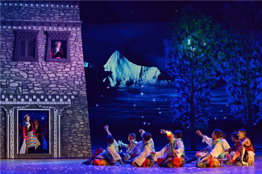 《亞丁?三怙主》歌舞劇不僅從藏族人民日常生產(chǎn)生活中提煉出很多舞蹈文化元素,還對(duì)宗教樂(lè)舞進(jìn)行了合理的借鑒。舞劇中用了道孚嘛呢鍋莊、德格卓且、巴塘弦子、爐霍鍋莊、石渠真達(dá)鍋莊、丹巴鍋莊、稻城鍋莊等民間舞蹈等元素,加以深化再創(chuàng)作,把原有的民間舞蹈的步伐、舞姿進(jìn)行夸張性的舞臺(tái)處理,并配以適當(dāng)?shù)年?duì)形,以更加適應(yīng)劇場(chǎng)舞臺(tái)的表演;大膽創(chuàng)新引入寺廟樂(lè)舞,寺廟樂(lè)舞本是藏傳佛教寺廟在宗教節(jié)日表演的祈福性舞蹈,舞劇編創(chuàng)人員合理借用寺廟樂(lè)舞的音樂(lè)、步伐、面具等,用以表現(xiàn)藏族人民與自然抗?fàn)?,不懼不屈的精神面貌;用泥土筑墻本是藏族人民建造房屋時(shí)的一種建筑技藝,在民間演繹成為地方舞種,舞劇編創(chuàng)人員將筑墻的基本步伐和動(dòng)作加以提煉,編創(chuàng)了一段約兩分鐘的打舞,用夸張的步伐和動(dòng)作,配以鏗鏘有力的勞動(dòng)號(hào)子,將豪氣灑脫的打墻舞氣氛推向高潮,以表達(dá)藏族人民的勤勞、勇敢與豪邁。州委黨校高級(jí)講師陶勇說(shuō):“《亞丁?三怙主》歌舞劇旨在講解香格里拉之魂,詮釋亞丁三怙主的本意,闡釋三座神山文化包含佛陀的核心教義。亞丁三怙主即仙乃日(觀世音菩薩)、央邁勇(文殊菩薩)、夏諾多吉(金剛手菩薩),它們分別象征慈悲、智慧、力量。這部歌舞劇是解讀藏民族精神文化、弘揚(yáng)藏民族真善美勇、傳遞康巴文化真諦的民族歌舞劇。歌舞劇通過(guò)《序》、《慈明》、《慧明》、《力明》、《尾聲》五個(gè)篇章,充分展示藏族傳統(tǒng)文化中熱情、好客、善良、慈悲、勇敢、追求和諧的優(yōu)秀價(jià)值觀,將民族文化融入到社會(huì)主義核心價(jià)值觀,展現(xiàn)了當(dāng)代人民群眾的幸福生活。同時(shí)對(duì)游客來(lái)講不僅豐富了亞丁文化,填補(bǔ)了游人僅僅觀賞雪山不知文化內(nèi)涵的短板,為以后推介甘孜州做了很好的示范?!?/span>