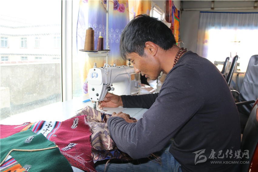 在白玉縣阿察鎮(zhèn)街上,有一處很不起眼的服裝加工店,店里擺放著各色質(zhì)地考究的服裝面料和時尚的藏族服裝。白玉縣祥陽措青年悅民族服飾商貿(mào)有限責任公司經(jīng)理在熱是納塔鄉(xiāng)納塔村的牧民,他穿著自己生產(chǎn)的藏裝。在工作室里,看到牧民或操作縫紉機、或用手工精心制作藏裝,他露出了開心的笑容。他一再叮囑員工,一定要仔細,要拿出最好的本事,用一流的技藝,不僅要讓顧客滿意,還要打出公司的服裝品牌,質(zhì)量是公司和員工的立身之本。