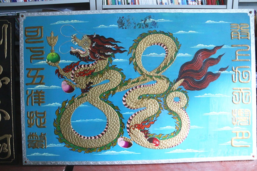 走進王長生的工作室,他保存有古董級的電影放映機、留聲機、電話、黑白電視機、照相器材和吉他、二胡、笛子等樂器應有盡有,看到這些古老的“裝備”,記者仿佛走進了那段塵封的歲月。2008年,王長生創(chuàng)作的雕刻畫《昂首蒼穹》,走進成都國際博覽中心,國家文化產業(yè)設計院的兩名專家評價說,作品的文化內涵和藝術觀賞性都很高。王長生解釋說,龍是中華民族的圖騰,龍中之龍寓意為上九天攬月,下五洋捉鱉,反映了中華民族的豪氣。