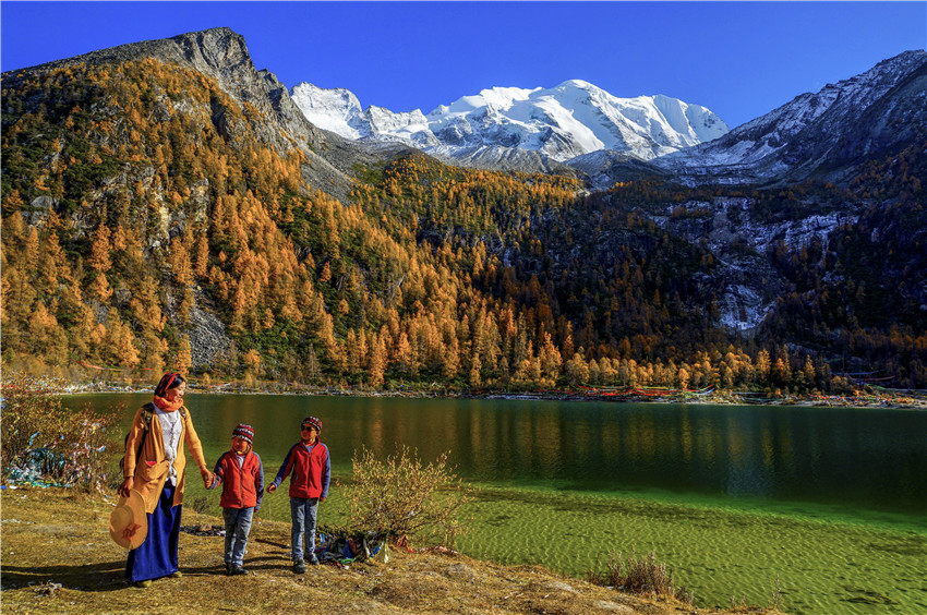 這里所說的跨越性是從時(shí)間和空間二維角度來講的。藏傳佛教中講輪回,在這種宗教觀念的影響下,宇宙之輪循環(huán)往復(fù),時(shí)間序列中過去、現(xiàn)在、未來永恒循環(huán),時(shí)間在空間中的綿延不會(huì)影響和區(qū)別生命的自在狀態(tài)。龍仁青小說在時(shí)間的跨越中體現(xiàn)藏文化的一脈傳承,《巴桑寺的C大調(diào)》里民國山灣巴桑寺的太陽“依舊蹲坐在西山頂上,有著持重老成的高僧大德一般的莊重和平靜”,《鳥巢》中當(dāng)下曲果小鎮(zhèn)的太陽“就像是一個(gè)深諳人生世事,有著豐富閱歷的老人,沉穩(wěn)而又粗然”。民國時(shí)期美國植物學(xué)家麥迪到巴桑寺拜謁神樹“拉香秀巴”,采集植物標(biāo)本;時(shí)光輪轉(zhuǎn)《綻放》里漢藏雙語寄宿小學(xué)的次洛在查美河岸草原尋找雪蓮和槐花,尋訪阿奶郎洛妮幽深的身世。上世紀(jì)70年代盛夏巴桑寺僧人久美身后姑娘的歌聲,幾十年后查美河岸次洛聽阿奶郎洛妮的吟唱。小說中時(shí)間跨度近一個(gè)世紀(jì),但藏族人對青藏高原富有山川地貌罕見的地理的情感與瑰麗的審美想象沒有變,對幽密深切滴愛情意蘊(yùn)的表達(dá)和書寫沒有變。