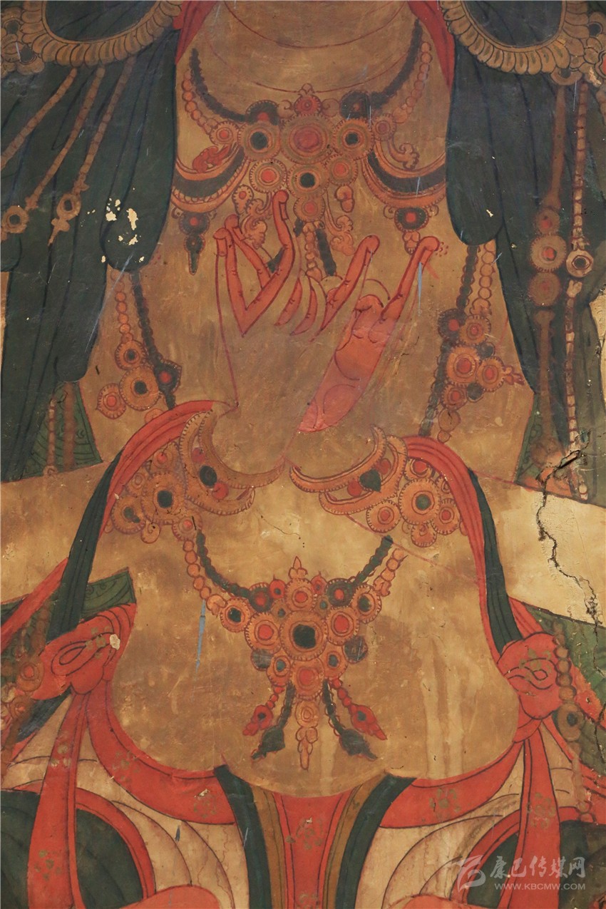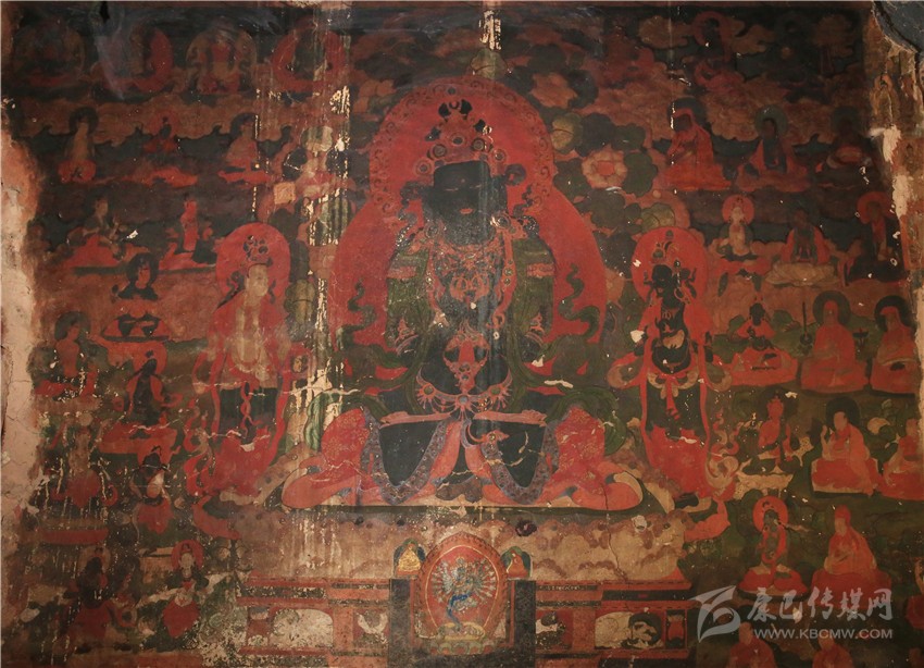 而吉祥天母殿內(nèi)的壁畫雖規(guī)模不及百柱大殿的壁畫大,但殿內(nèi)保存的壁畫歷史更悠久,畫風(fēng)更獨(dú)特,是一座取之不盡用之不竭的壁畫寶庫,是目前當(dāng)?shù)乇4娴谋诋嫯?dāng)中規(guī)模最大最古老的壁畫之一。