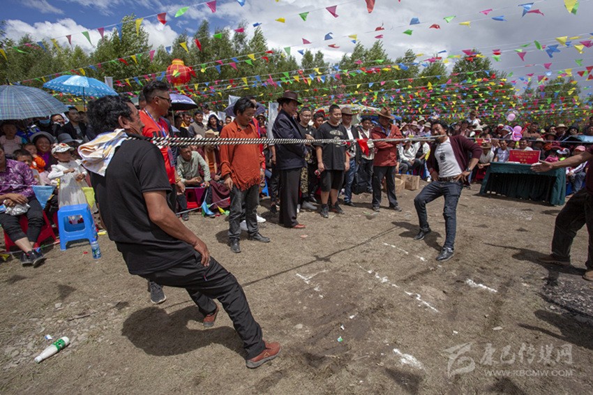除以上活動(dòng),滾桶接力、俯撐馬鞍吃葡萄、穿藏裝揉糌粑、套牛角等趣味比賽無(wú)不展示民族體育的獨(dú)特風(fēng)格?!斑@種拔河還是第一次見(jiàn),很有意思。”其中,“格吞”比賽(把帶子套在脖子上拔河)深得觀眾喜愛(ài)。