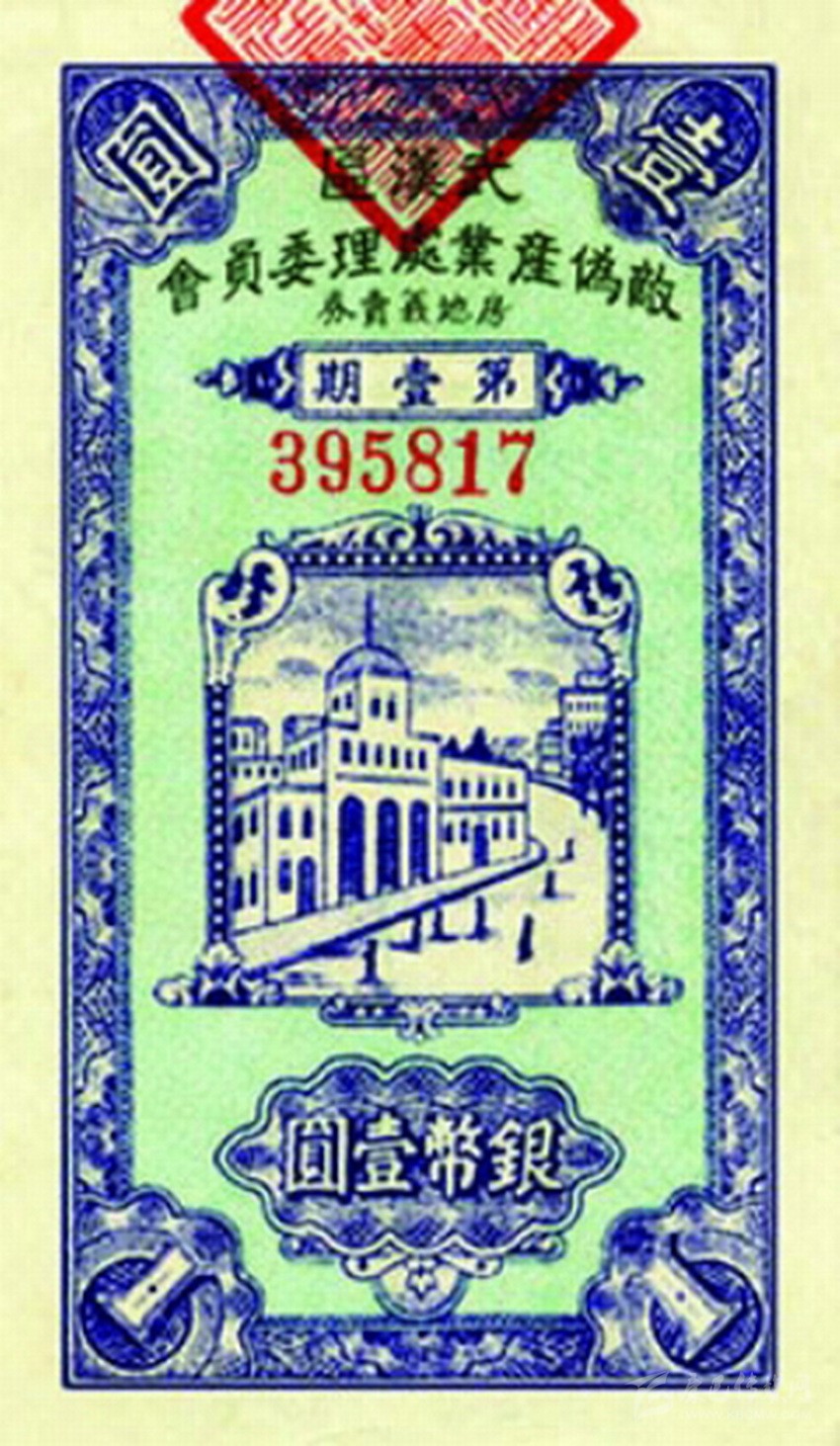 1949年3月,武漢市政府發(fā)行了100萬張彩票,面值都是“銀幣一元”,可以買一張,中獎率是兩萬五千分之一,獎品是位于漢口的別墅。推出彩票“房地義賣券”,以武漢區(qū)敵偽產(chǎn)業(yè)處理委員會名義發(fā)行,票幅高62毫米,闊106毫米,售價為銀幣壹元,計(jì)劃發(fā)行100萬枚,計(jì)有39幢房屋充作獎品,定于5月10日在漢口當(dāng)眾搖彩。1949年,正是國民黨政權(quán)風(fēng)雨飄搖之時,因此5月10日的搖彩日也就成了彩票發(fā)行組織者的逃命日,六天后武漢解放,那“房地獎”未能兌現(xiàn)。