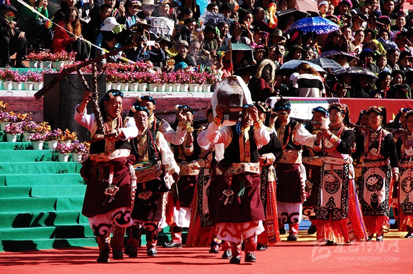 槍舞,嘉絨語(yǔ)中稱(chēng)為“訥沖呷兒”,主要是在祭祀、集會(huì)、節(jié)日時(shí)表演的一種近似于戰(zhàn)術(shù)的舞蹈。在舞蹈中,舞者圍成一個(gè)圓圈,手持明火槍?zhuān)骰饦專(zhuān)亲钤绲囊环N真正適于在戰(zhàn)場(chǎng)上為軍事目的使用的火槍。槍膛為一根圓柱形的鐵筒,筒口直徑為三厘米左右,在槍膛底部,有一個(gè)小圓孔伸出槍管,為導(dǎo)火管。如耳朵狀,因此也稱(chēng)為槍耳,主要是用來(lái)點(diǎn)火的地方。圓筒固定在堅(jiān)硬的木托頂端。這種輕火器或者說(shuō)小型火炮使用的是形狀不規(guī)則的彈丸,即不大的實(shí)心彈,它緊貼大粒火藥制成的裝藥,借緊挨導(dǎo)火孔的火繩發(fā)射。