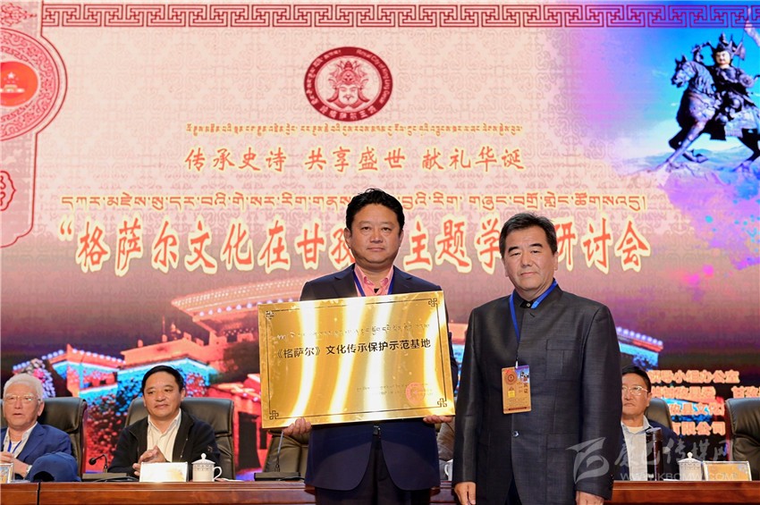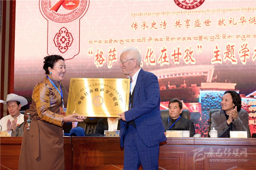 著名格薩爾文化研究專家降邊嘉措為甘孜縣授牌。
