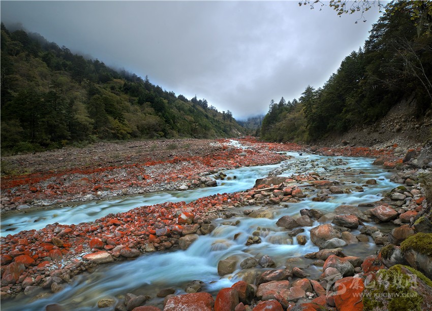 這里的景“色”是不可替代的,據(jù)說紅石移到其他地方之后,就變色了,石頭上面的紅色苔蘚也不復存在,讓人不得不感嘆海螺溝的神奇與幻妙。