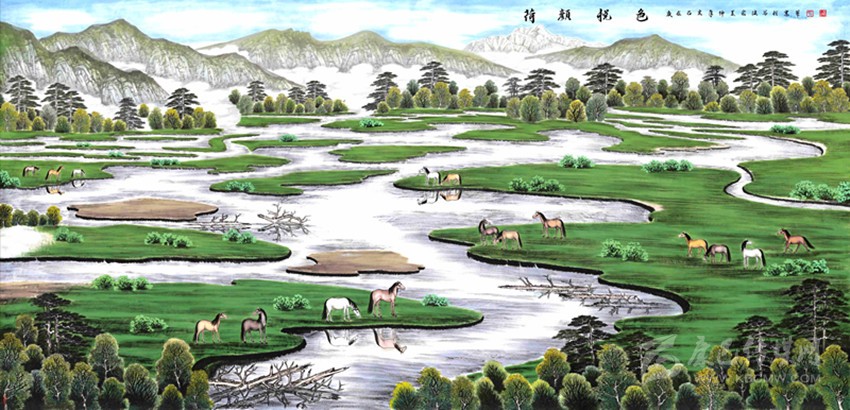 對于眾多的稱贊,裴洪波沒有過多留意,相反他更愿意分享創(chuàng)作中的趣事。采訪中,他就 “康定新八景”之《情海飲雪》背后的故事與記者分享。