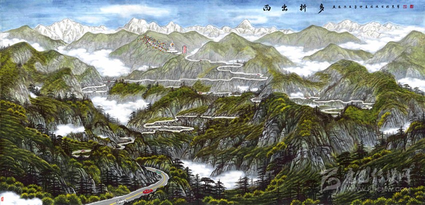 根據(jù)裴洪波所說,不難發(fā)現(xiàn),“康定新八景”不光是八幅惹眼的畫作,它們還有著深層次的含義。那么,這層深意是否能解釋“康定新八景”新在哪里?采訪繼續(xù)進行著。