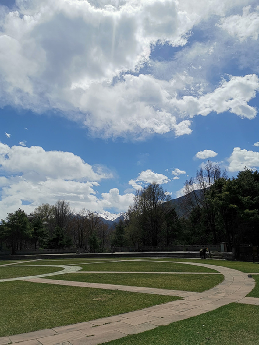 回到家后,我隔窗再望獅子巖,那濃蔭綠樹已遮得嚴(yán)嚴(yán)實(shí)實(shí),根本看不到獅子巖的影子,倒是濃蔭中,隨風(fēng)飄動(dòng)的彩色經(jīng)幡時(shí)隱時(shí)現(xiàn)。