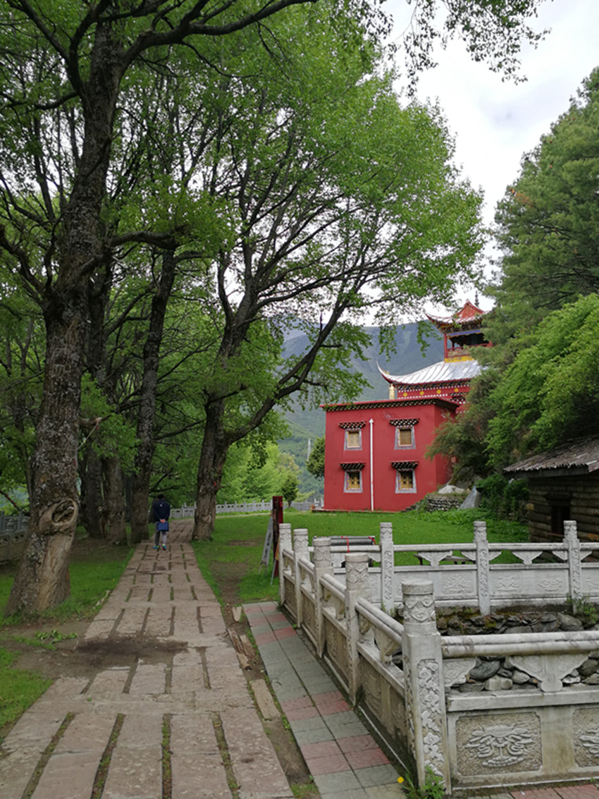中國(guó)民俗有“大年初一不竄門”,這一天,康定人很多都會(huì)去寺廟燒香敬佛。前年大年初一,我便去了觀音閣。進(jìn)門處,有專供燒紙錢的地方。再上階梯,有長(zhǎng)列的白色佛塔,進(jìn)寺就可點(diǎn)燈朝拜。出了觀音閣,我順道去找獅子巖。公路一側(cè)的堡坎已將原來(lái)的小徑斬?cái)啵媳た?,小徑幾乎已沒(méi)了蹤跡。再仰頭望,獅子巖已是掩映在濃密的綠樹雜叢間。長(zhǎng)在右側(cè)的花椒樹,已不見蹤影。幾株高大的白楊樹遮天蔽日,最大的都長(zhǎng)到盆口粗了?!鞍倌陿淠尽保@無(wú)疑還是當(dāng)年那幾棵白楊樹了。我艱難地鉆過(guò)荒叢爬到獅子巖腳下,那“祭祀臺(tái)”上如過(guò)去一樣擺放有貢品,旁邊和樹枝上掛有經(jīng)幡,但周圍仍沒(méi)有一絲煙熏火燎過(guò)的痕跡。