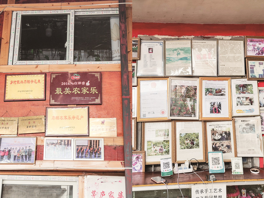 她說:“一開始,我的目的就是想掙錢,想要這個(gè)家庭擺脫貧困。在開辦這個(gè)農(nóng)莊之前,我家一直就在借債還債的循環(huán)中苦苦掙扎。天有不測(cè)風(fēng)云,2006年丈夫華建做心臟手術(shù),2007年又做膽息肉手術(shù),花光了四處借來(lái)的四萬(wàn)多塊錢,丈夫出院回家后,不能外出打工,又要急著還人家的錢,在無(wú)計(jì)可施的時(shí)候,我們想到了搞養(yǎng)殖,養(yǎng)魚魚死光了,養(yǎng)雞倒是成功了,但是賣不出去,基本虧了個(gè)底朝天。我只好四處打工,但是基本上都處于入不敷出的尷尬境地?!?013年長(zhǎng)子華啟明住院做脾裂手術(shù),2015年公公腦梗,又去州醫(yī)院手術(shù),好像前半輩子就是借錢、還錢,拆東墻補(bǔ)西墻,無(wú)可奈何。正當(dāng)經(jīng)濟(jì)上緊張得不可開交,覺得山窮水盡時(shí),國(guó)家出臺(tái)了鄉(xiāng)村振興戰(zhàn)略,她響應(yīng)國(guó)家號(hào)召,想到了回到家鄉(xiāng)開辦農(nóng)家樂。第一年,在“婦女創(chuàng)業(yè)”貸款8萬(wàn)元、信用社貸款16萬(wàn)元,把農(nóng)家樂勉強(qiáng)辦起來(lái)了。在幾年的經(jīng)營(yíng)中,“茅廬農(nóng)莊”的口碑越來(lái)越好,在2016年被杵坭鄉(xiāng)授予“2016大眾評(píng)選最美農(nóng)家樂”,在2018年人氣美食商家網(wǎng)評(píng)選為“瀘定縣網(wǎng)友喜愛美食商家評(píng)選季軍”,2019年人氣生態(tài)評(píng)選網(wǎng)評(píng)選為“瀘定縣網(wǎng)友喜愛生態(tài)休閑農(nóng)莊評(píng)選季軍”。現(xiàn)在,農(nóng)莊的生意越來(lái)越好,規(guī)模越來(lái)越大,家里的日子越來(lái)越好,一家人也過上了幸福的生活。