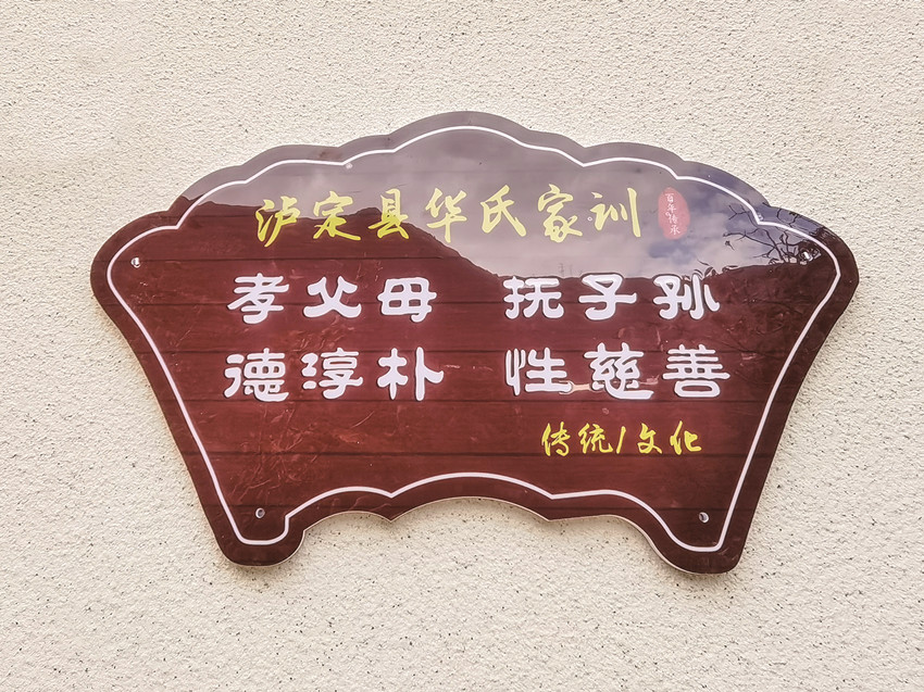 在“鄉(xiāng)村振興貸款”200萬(wàn)元的新裝修好的農(nóng)莊民宿進(jìn)門外墻上,我們可以看到剛上墻的《瀘定華氏家訓(xùn)》: