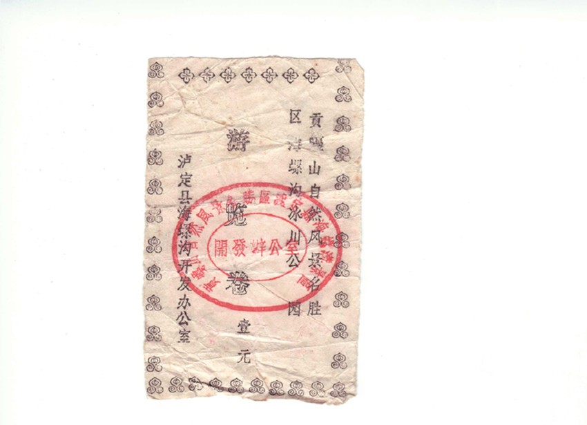 我有心收藏海螺溝旅游開發(fā)建設(shè)三十年來不同時期、品相各異的門卷、門票數(shù)枚。門卷、門票是游客進入景區(qū)的憑證,也是景區(qū)的“臉面”。在我收藏的門卷、門票中有一枚海螺溝景區(qū)第一代門卷。構(gòu)圖簡單,白底黑字的第一代門卷,雖然在歲月中褪去了鮮色,但在方寸之間卻承載著海螺溝景區(qū)建設(shè)最初的時光和開發(fā)建設(shè)者的記憶,更是瀘定縣三十年前發(fā)展旅游的歷史見證。一晃三十年光陰,至今我對海螺溝景區(qū)第一代門卷的來歷,還記憶猶新。