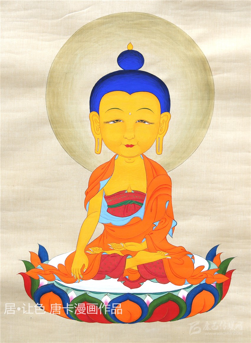 唐卡是藏族最具代表性的藝術(shù)門類之一,在其千年的傳承歷史中吸收融合了印度、尼泊爾等多地的藝術(shù)元素,發(fā)展成為極具雪域特色和審美價(jià)值的藝術(shù)形式。傳統(tǒng)唐卡缺乏立體感和形象感,畫面層次模糊,人物形象單薄,不利于民族文化傳承,“對于不懂畫的人來說,這種畫法他們看不懂。”基于此,居·讓色對唐卡繪畫技法作了改良,結(jié)合現(xiàn)代漫畫,以寫實(shí)的手法,實(shí)現(xiàn)活態(tài)傳承、永續(xù)流傳目的。