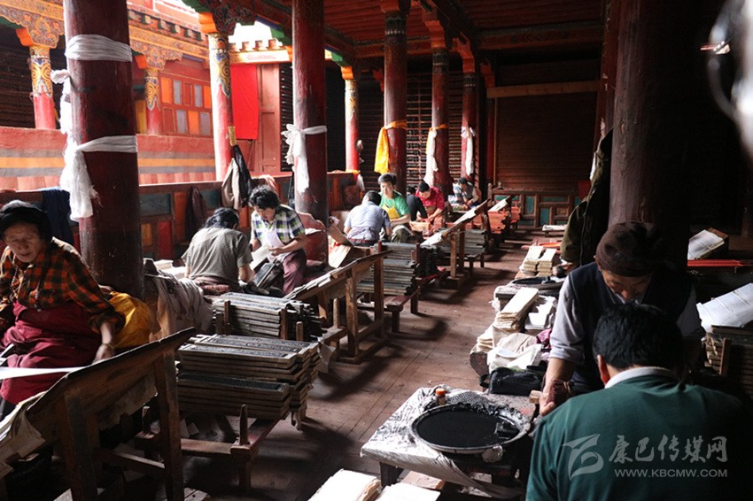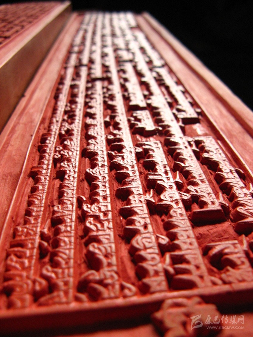 公元1730年2月3日,正式在倫珠頂開始進(jìn)行校對和雕刻工作。為了提高印版的質(zhì)量,土司規(guī)定實(shí)行三級審校制度,即書法家們負(fù)責(zé)對寫好的版文進(jìn)行兩校,以便及時修改錯漏。然后經(jīng)編審師們復(fù)審和終審后,方可交刻工雕刻??掏旰?,編審師們在清樣上還要進(jìn)行三校。版面改動較多的進(jìn)行重刻,改動較少的進(jìn)行補(bǔ)刻。規(guī)定的校次不準(zhǔn)任意減少或改動。雕刻工作由噶瑪班珠和次白總負(fù)責(zé)。經(jīng)過60多名書寫員、10名編審師、400余名刻工以及100多名雜工的艱苦勞動,浩繁的《甘珠爾》刻版工程于在公元1734年完成。印版所用經(jīng)費(fèi),折成茶塊共計(jì)7622包(每包約20公斤)。