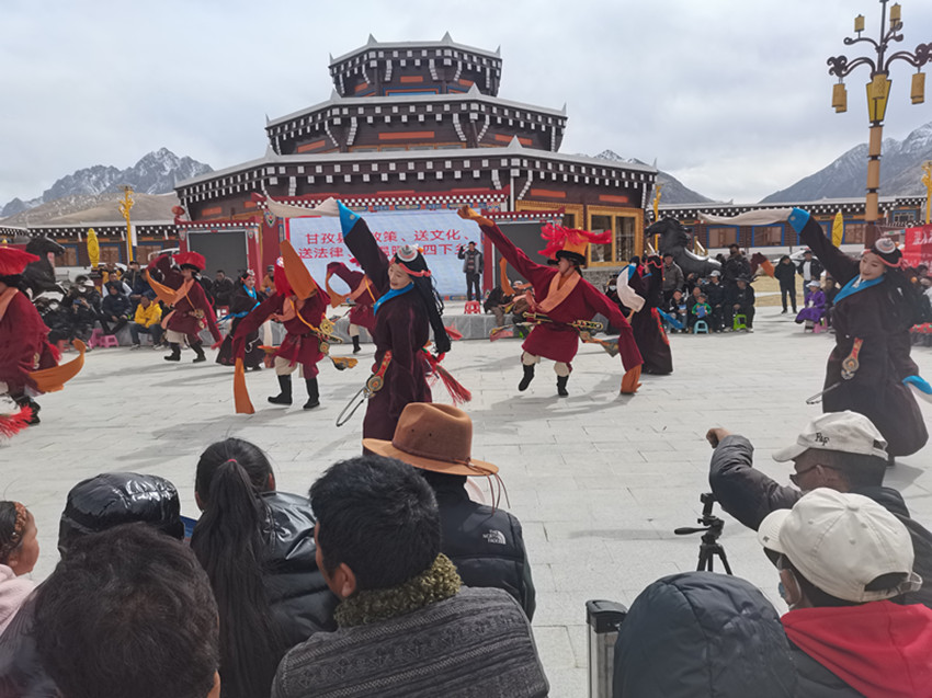 這邊搭起咨詢(xún)臺(tái)為群眾送衛(wèi)生、送科技、送法治,那邊搭起舞臺(tái)為群眾奉上了一場(chǎng)精彩的文藝表演。本土山歌《甘孜山歌》、獨(dú)唱原創(chuàng)歌曲、舞蹈《甘孜踢踏》《嶺·卓》等群眾喜聞樂(lè)見(jiàn)的節(jié)目輪番登場(chǎng),贏得陣陣掌聲。