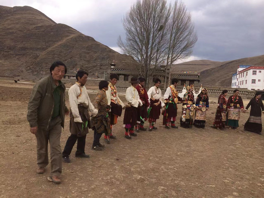秋加措老師體驗(yàn)民間舞蹈。