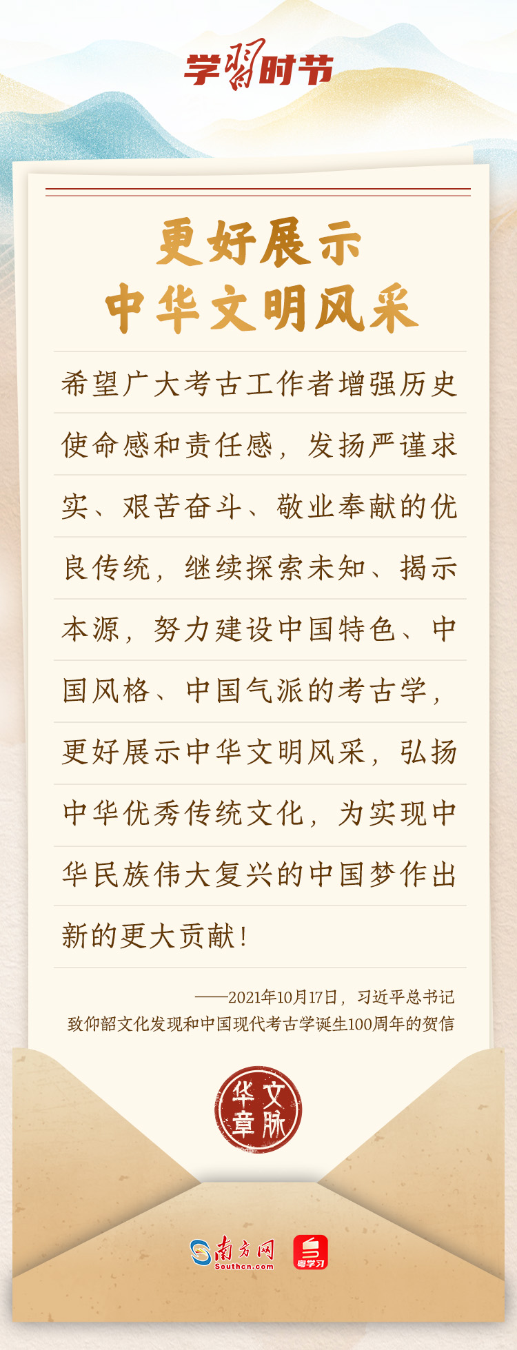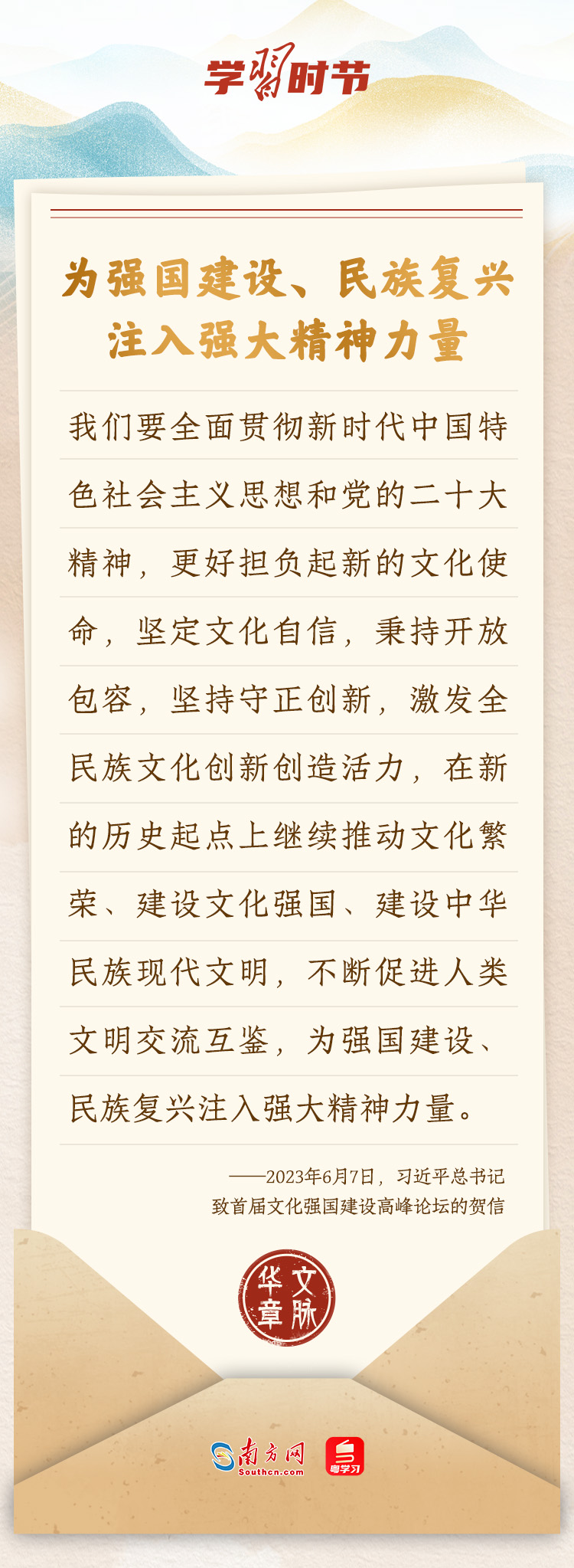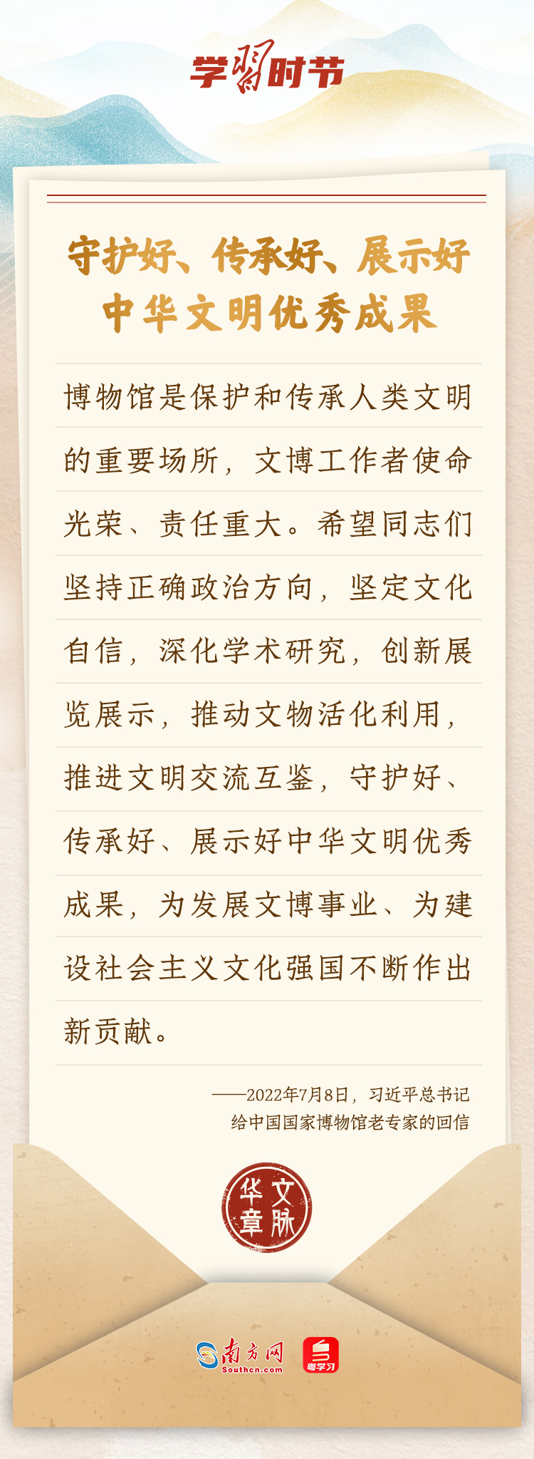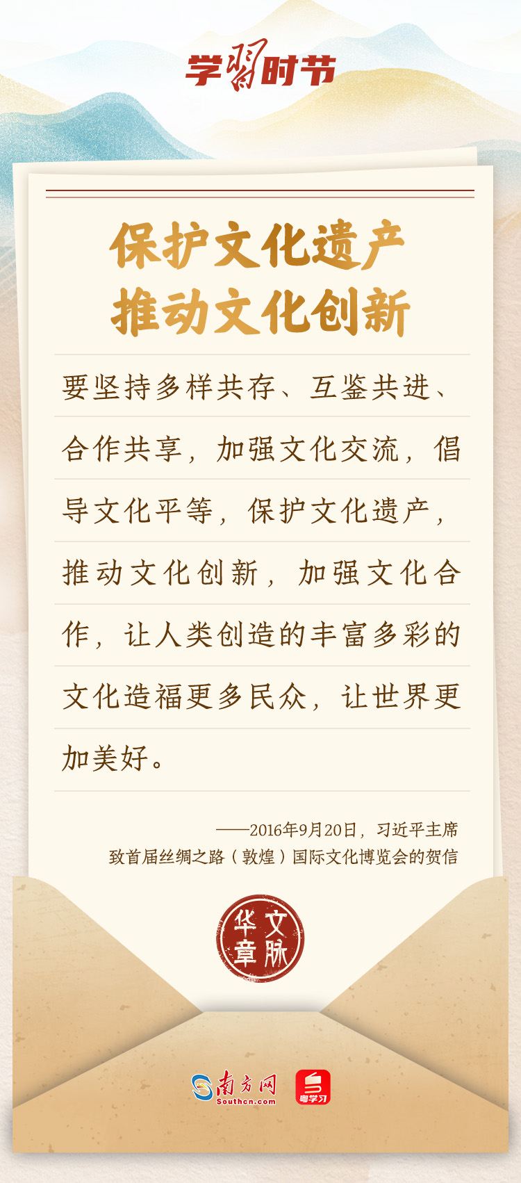 “中華民族在幾千年歷史中創(chuàng)造和延續(xù)的中華優(yōu)秀傳統(tǒng)文化,是中華民族的根和魂。”習(xí)近平總書記多次通過發(fā)賀信、寫回信等方式,表達(dá)著對弘揚中華優(yōu)秀傳統(tǒng)文化的殷切希望,飽含深情、字字暖心、催人奮進(jìn)。讓我們一起“讀”信。