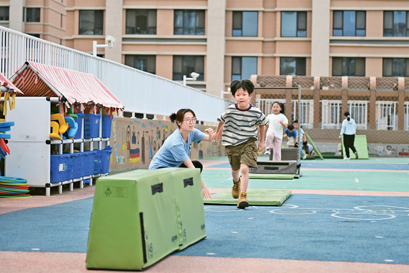 近年來,河北雄安新區(qū)通過創(chuàng)新教育發(fā)展體制機制、高標準配建教育設施、引入專業(yè)教師隊伍、引進優(yōu)質(zhì)教育資源等方式,不斷推動教育高質(zhì)量發(fā)展。圖為2024年5月23日,當?shù)赜變簣@的孩子們在室外活動。 新華社記者 牟宇/攝