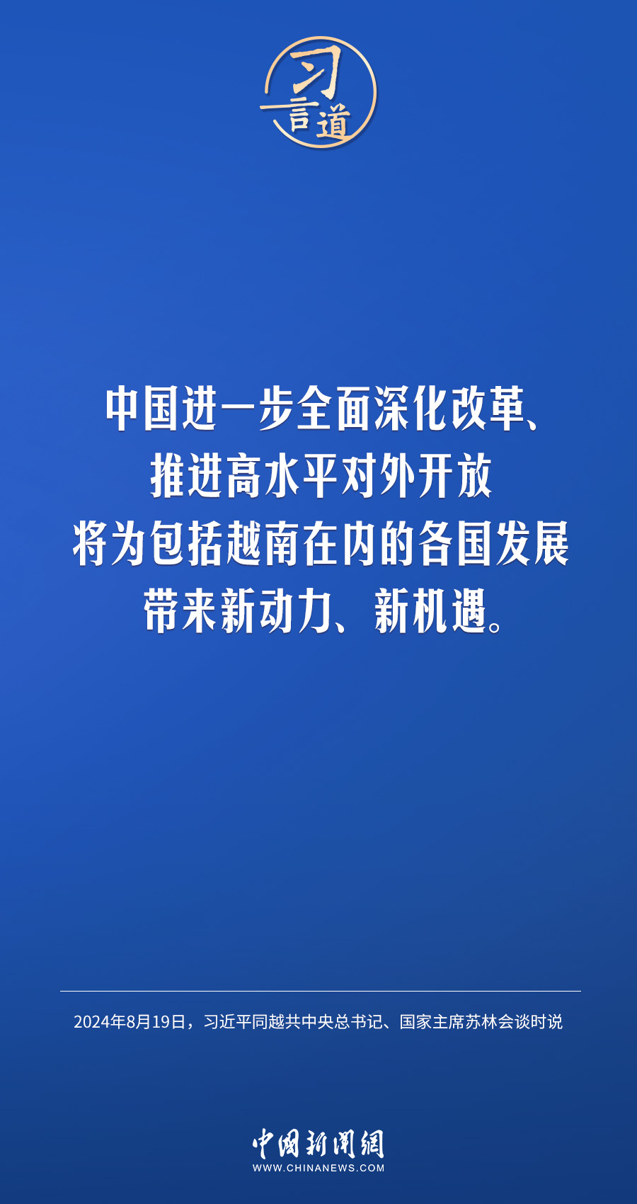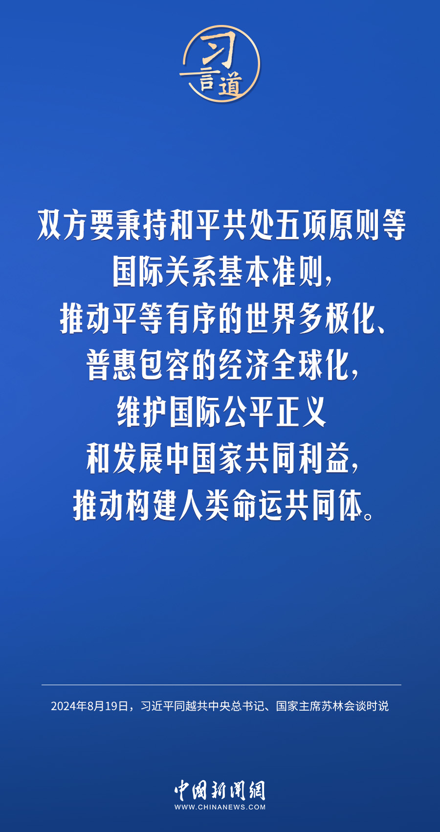8月19日,中共中央總書(shū)記、國(guó)家主席習(xí)近平在北京人民大會(huì)堂同來(lái)華進(jìn)行國(guó)事訪問(wèn)的越共中央總書(shū)記、國(guó)家主席蘇林舉行會(huì)談。習(xí)近平指出——
