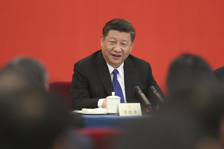 ??2018年3月4日下午,中共中央總書記、國家主席、中央軍委主席習近平看望參加全國政協(xié)十三屆一次會議的民盟、致公黨、無黨派人士、僑聯(lián)界委員,并參加聯(lián)組會,聽取意見和建議。 新華社發(fā)(盛佳鵬 攝)