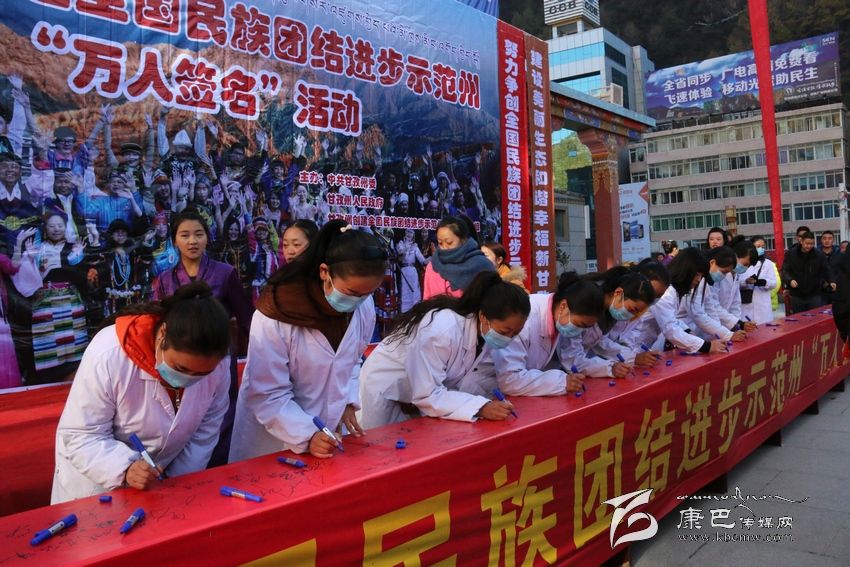 我們的家鄉(xiāng)更好更快地發(fā)展。”11月20日,在我州康定情歌廣場舉行創(chuàng)建全國民族團結(jié)進步示范州“萬人簽名”活動現(xiàn)場,來自省藏校的學生代表李康珠這樣說道。