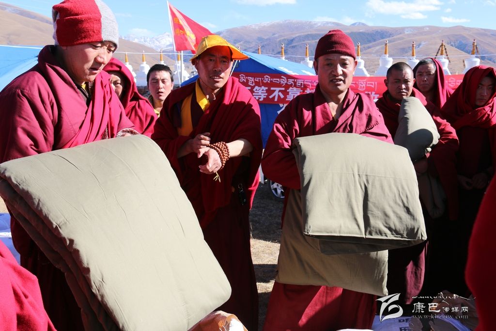 為幫助地震災(zāi)區(qū)廣大受災(zāi)僧眾安全過(guò)冬,解放軍總裝備部緊急調(diào)運(yùn)了一批軍用棉被和帳篷,以實(shí)際行動(dòng)給災(zāi)區(qū)群眾送上一份溫暖。29日下午,部分救援物資運(yùn)抵道孚縣惠遠(yuǎn)寺,道孚縣統(tǒng)戰(zhàn)部受總裝備部的委托,為該寺受災(zāi)僧侶發(fā)放了533床棉被和13頂帳篷。據(jù)了解,此次捐贈(zèng)棉被均是部隊(duì)購(gòu)置高質(zhì)量、無(wú)雜質(zhì)的優(yōu)質(zhì)軍用棉被,捐贈(zèng)物將陸續(xù)分發(fā)到康定、道孚兩縣的受災(zāi)寺廟,重點(diǎn)解決受災(zāi)僧侶缺少御寒棉被的問(wèn)題。(記者 張濤 攝影報(bào)道)