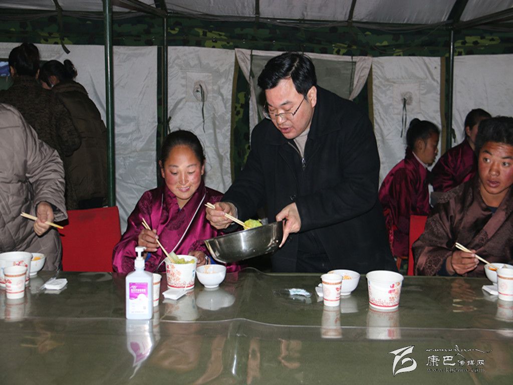 “這水餃做得很不錯(cuò)”,州委書(shū)記胡昌升一邊吃著水餃,一邊對(duì)坐在身旁的學(xué)生澤仁巴姆說(shuō)道,“明天就要回家過(guò)寒假了,你們家里也受了災(zāi),回家一定要多幫忙做事”。澤仁巴姆連連應(yīng)允,“回去我還要告訴父母地震時(shí)學(xué)校發(fā)生的一切,有這么多叔叔阿姨幫助我們”。