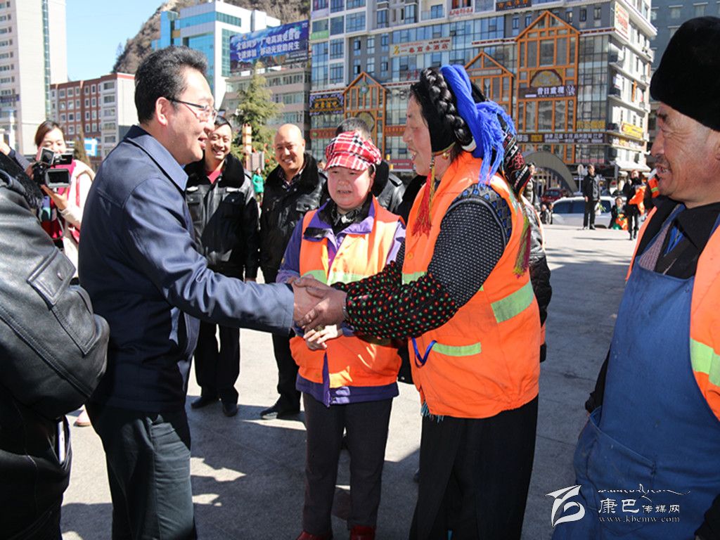 “辛苦了!祝您們新年快樂(lè)。”在康定情歌廣場(chǎng),益西達(dá)瓦向市政管理人員和環(huán)衛(wèi)工人們送上了新年祝福,感謝他們?yōu)閯?chuàng)造整潔、優(yōu)美的城市環(huán)境作出的貢獻(xiàn)。益西達(dá)瓦說(shuō),近年來(lái)康定在城市建設(shè)和管理上取得了很大的成績(jī),2014年躋身中國(guó)最美麗縣城第27名,這個(gè)成績(jī)的取得離不開(kāi)廣大市政管理人員和環(huán)衛(wèi)工作者默默無(wú)聞地奉獻(xiàn),感謝你們?yōu)榍鍧嵆鞘懈冻龅男燎趧趧?dòng)。