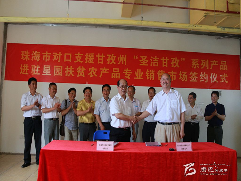 珠海市為了更好幫助甘孜州推銷(xiāo)特色農(nóng)副產(chǎn)品,還專(zhuān)門(mén)在位于繁華市區(qū)的星園市場(chǎng)開(kāi)辟了珠海市對(duì)口幫扶地區(qū)特優(yōu)農(nóng)副產(chǎn)品專(zhuān)業(yè)銷(xiāo)售市場(chǎng),并設(shè)立了近400平方米的“圣潔甘孜”特色產(chǎn)品專(zhuān)銷(xiāo)區(qū)。在參觀(guān)了甘孜州產(chǎn)品專(zhuān)區(qū)后,我州考察團(tuán)領(lǐng)導(dǎo)與珠海市相關(guān)領(lǐng)導(dǎo)共同見(jiàn)證了珠海市對(duì)口支援甘孜州“圣潔甘孜”系列產(chǎn)品進(jìn)駐星園扶貧農(nóng)產(chǎn)品專(zhuān)業(yè)銷(xiāo)售市場(chǎng)簽約儀式,我州知名民營(yíng)企業(yè)華康進(jìn)出口(集團(tuán))公司正式成為進(jìn)駐星園扶貧農(nóng)產(chǎn)品專(zhuān)業(yè)銷(xiāo)售市場(chǎng)的第一家州內(nèi)企業(yè)。