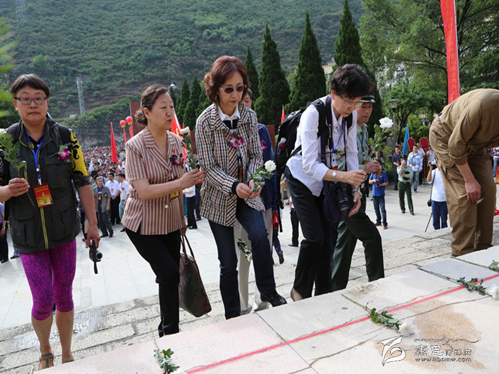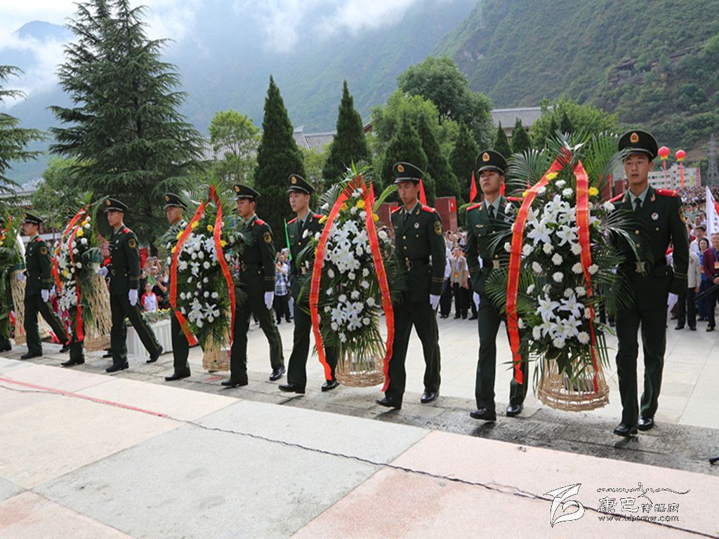 胡昌升與老一輩革命家親屬代表賀曉明、劉蒙,中國進(jìn)出口銀行四川分行行長王園園,援建企業(yè)代表王小朝,中共瀘定縣委負(fù)責(zé)同志向?yàn)o定橋紀(jì)念碑敬獻(xiàn)花籃。