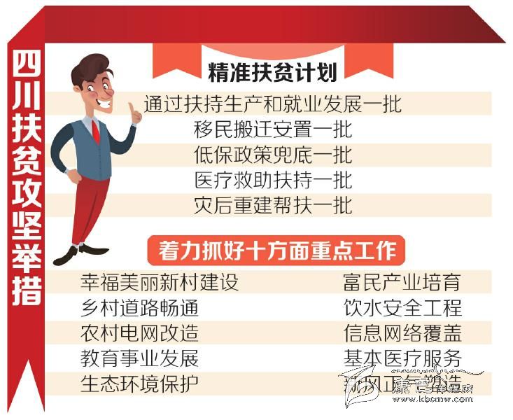 2014年,四川已摸清家底:全省共有11501個貧困村、88個貧困縣,168.48萬戶貧困戶和497.65萬貧困人口。四川省扶貧和移民局副局長劉兵說,目前正進入精準扶貧、精準脫貧的“攻堅拔寨”關鍵時期。7月初,四川出臺聚焦各類貧困人口的精準扶貧計劃,即通過扶持生產(chǎn)和就業(yè)發(fā)展一批、移民搬遷安置一批、低保政策兜底一批、醫(yī)療救助扶持一批、災后重建幫扶一批。