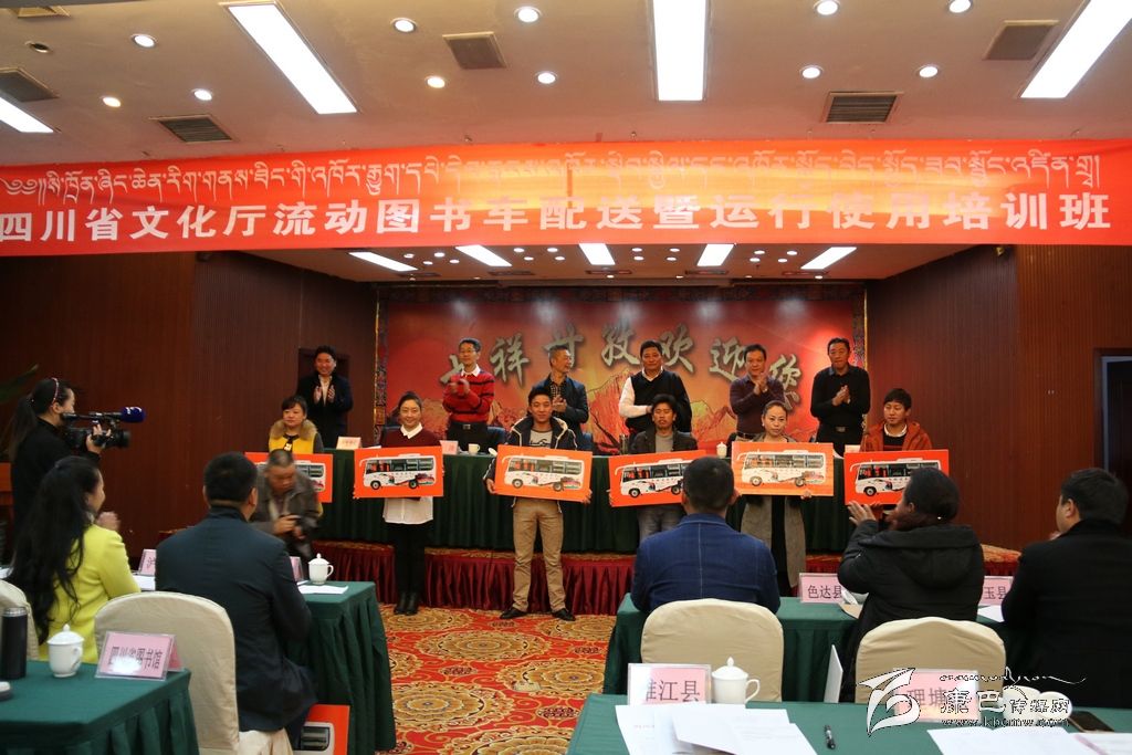 本網訊(記者 宋志勇文/圖)10月13日,四川省文化廳流動圖書車配送暨運行使用培訓會在康定市舉行,共為我州配送流動圖書服務車18輛。省文化廳副廳長向華全,州委常委、宣傳部長相洛,省文化廳財務處處長潘沛等出席并為18個縣(市)發(fā)放了車鑰匙。