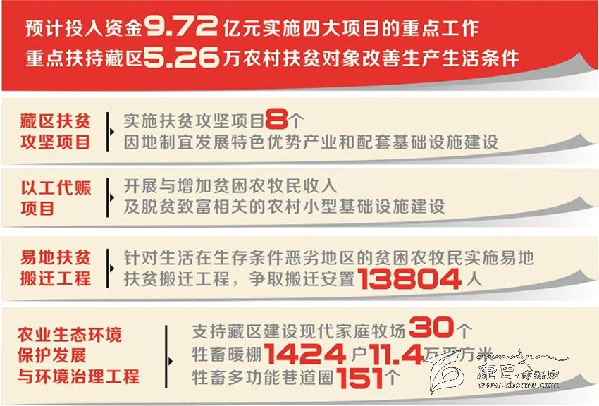 2016年,藏區(qū)扶貧解困行動(dòng)計(jì)劃預(yù)計(jì)投入資金9.72億元,將繼續(xù)實(shí)施藏區(qū)扶貧攻堅(jiān)項(xiàng)目、以工代賑項(xiàng)目、易地扶貧搬遷工程和農(nóng)業(yè)生態(tài)環(huán)境保護(hù)發(fā)展與環(huán)境治理工程四大重點(diǎn)工作,重點(diǎn)扶持藏區(qū)5.26萬農(nóng)村扶貧對(duì)象改善生產(chǎn)生活條件。與去年相比,今年的扶貧解困行動(dòng)計(jì)劃有何變化與亮點(diǎn)?記者采訪了省發(fā)展改革委、省扶貧移民局等相關(guān)處室的負(fù)責(zé)人。