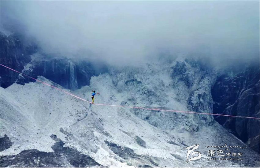 本次高空挑戰(zhàn)線路長約820米,扁帶架設(shè)于海拔高度約3600米的海螺溝冰川之上,所有參賽選手所依仗的“工具”是一根寬度僅有2.5厘米的扁帶,相比于走鋼絲,扁帶充滿彈性,容易左右搖擺、上下顛簸,而且走扁帶沒有平衡桿輔助,難度可想而知。同時海拔高度對高空扁帶運動影響極大,所以該類項目一般都在海拔2000米以下的地區(qū)舉行,此次在海拔3600米的冰川上舉行,讓本次扁帶極限挑戰(zhàn)賽成為全球挑戰(zhàn)難度最大、賽事規(guī)格最高的一次比賽。