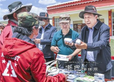 調(diào)研中,于康震一行還在色須鎮(zhèn)開展的包蟲病科技下鄉(xiāng)活動現(xiàn)場,向前來咨詢的農(nóng)牧民群眾發(fā)放宣傳資料和驅(qū)蟲藥品。他對群眾們說,今天我們來這里送知識、送物資、送藥品、送技術(shù),目的就是為了更好地防控包蟲病。包蟲病能否控制住,關(guān)鍵取決于廣大農(nóng)牧民群眾,大家如果能按照防控知識和技術(shù)去做,包蟲病防控工作就成功了一大半。