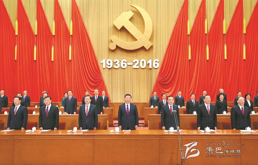 人民大會堂大禮堂內(nèi)氣氛莊重而熱烈。主席臺上方懸掛著“紀(jì)念紅軍長征勝利80周年大會”會標(biāo),帷幕正中是中國共產(chǎn)黨黨徽和“1936-2016”字標(biāo),10面紅旗分列兩側(cè)。大禮堂二層眺臺懸掛標(biāo)語:緊密團(tuán)結(jié)在以習(xí)近平同志為總書記的黨中央周圍,繼承和弘揚偉大長征精神,不忘初心,繼續(xù)前進(jìn),走好新的長征路!