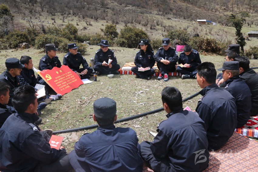 九龍縣公安局黨員在蟲(chóng)草山上一邊為群眾服務(wù),一邊開(kāi)展“兩學(xué)一做”學(xué)習(xí)教育。本網(wǎng)資料庫(kù)圖