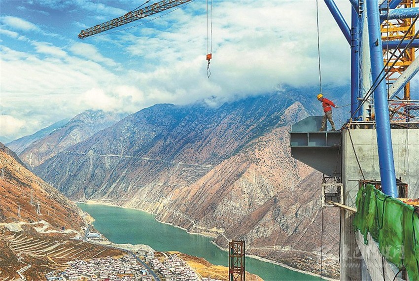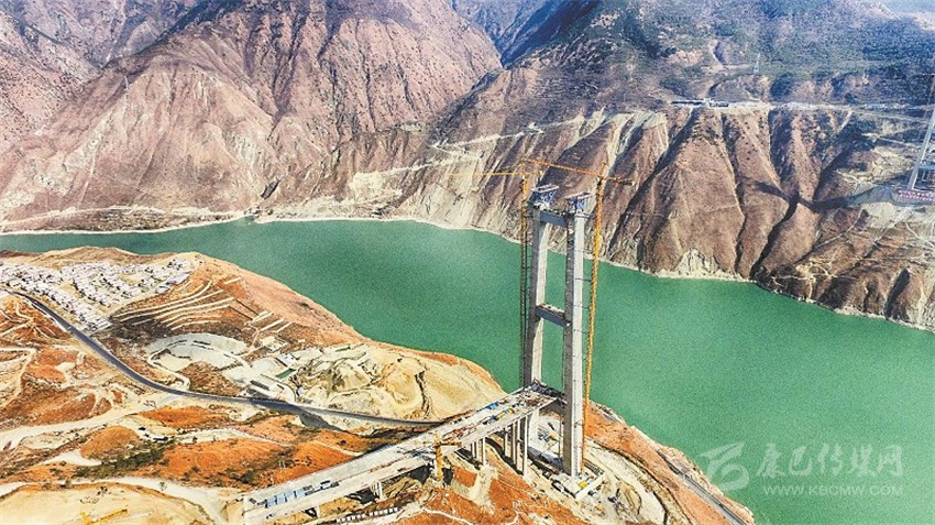 瀘定大渡河興康特大橋是雅康高速公路的重點控制性工程之一,是一座建在高海拔、高地震烈度帶上的超大跨徑鋼桁梁懸索橋,采用鋼混疊合橋道系,造價超過10億元,因建設(shè)技術(shù)難度大被譽(yù)為“川藏第一橋”。兩岸主墩索塔高188米,塔頂至河面垂直高差364米,橋橫跨大渡河,但在河中沒有橋墩,采取的是懸索橋設(shè)計,在兩岸修建兩塔、兩錨,作為支撐和受力,橋面以懸索拉伸。未來,大橋?qū)⒁?/span>1100米的超長跨徑連通大渡河兩岸,變天塹為通途。 (何海洋 攝影報道)