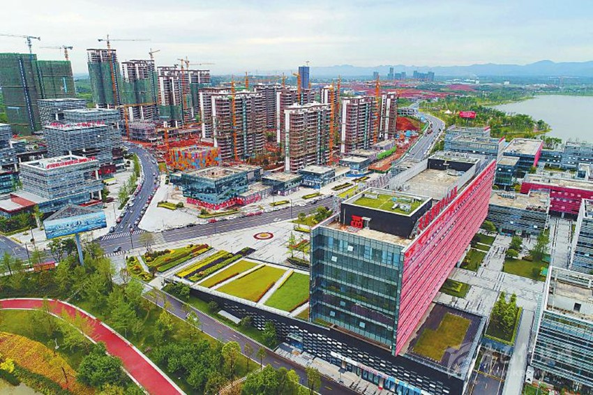 5月3日,“喜迎黨代會 天府新飛躍”全國主流新媒體瞰四川大型采訪活動首站走進成都市。圖為航拍的天府新區(qū)成都直管區(qū)的成都科學(xué)城。 姜曦 攝