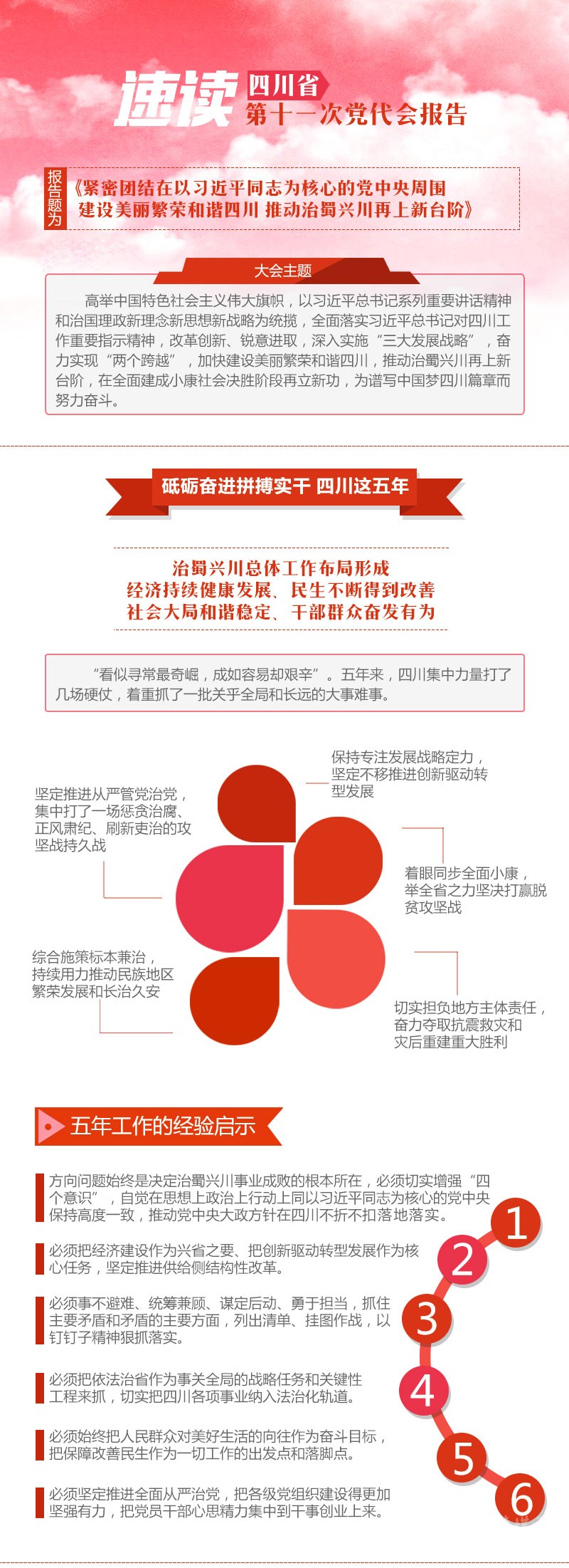 省第十一次黨代會(huì)5月24日上午開幕,王東明代表十屆四川省委向大會(huì)作報(bào)告。四川這五年砥礪奮進(jìn)拼搏實(shí)干取得了怎樣的成績(jī)?收獲哪些經(jīng)驗(yàn)啟示?未來如何開創(chuàng)發(fā)展新局面?