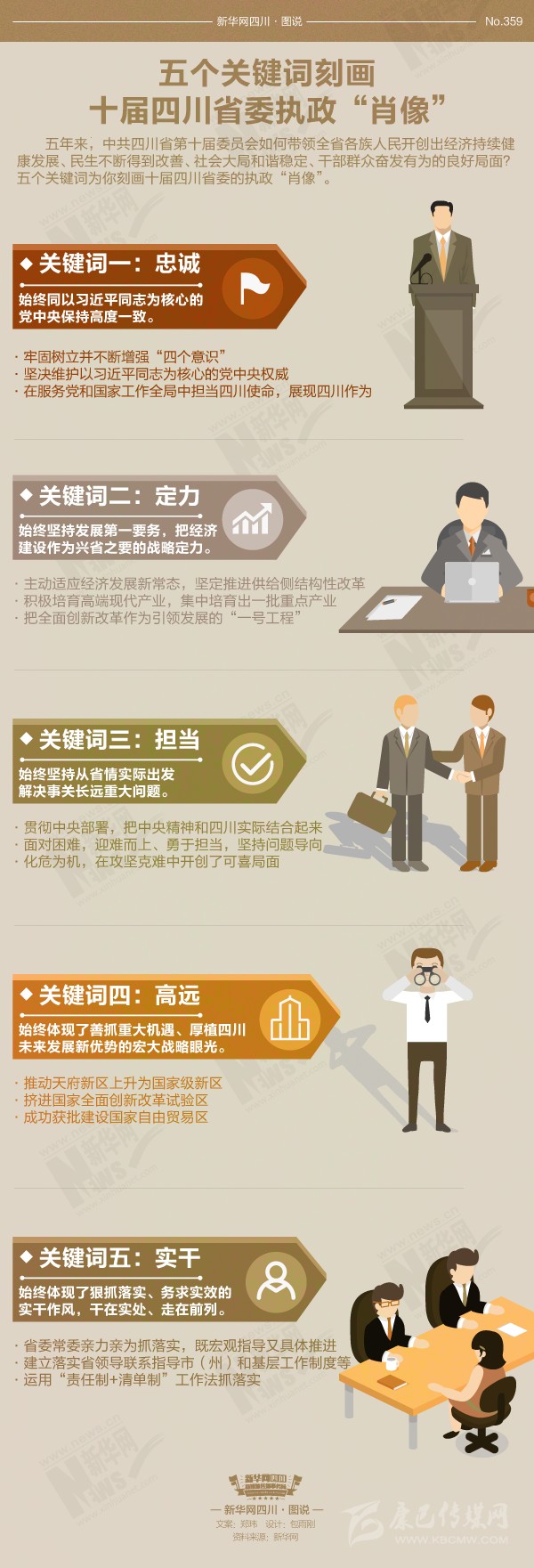 每一個(gè)時(shí)代都有各自的任務(wù),身處這個(gè)時(shí)代的執(zhí)政者也有自己的執(zhí)政“個(gè)性”。五年來,中共四川省第十屆委員會(huì)如何帶領(lǐng)全省各族人民開創(chuàng)出經(jīng)濟(jì)持續(xù)健康發(fā)展、民生不斷得到改善、社會(huì)大局和諧穩(wěn)定、干部群眾奮發(fā)有為的良好局面?五個(gè)關(guān)鍵詞為你刻畫十屆四川省委的執(zhí)政“肖像”。