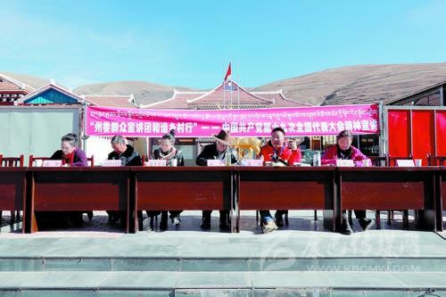 當(dāng)天,州委群眾宣講團成員分三組分赴尼斯鎮(zhèn)、熱打鄉(xiāng)、水洼鄉(xiāng)和正斗鄉(xiāng)開展十九大精神宣講。宣講員們緊扣“不忘初心、牢記使命”的主題,圍繞群眾最關(guān)心的精準(zhǔn)扶貧、醫(yī)療救助、義務(wù)教育以及愛國守法、依法治國等方面向群眾進行精彩宣講。接地氣的宣講贏得群眾陣陣掌聲,講到精彩處群眾還為宣講員敬獻哈達。