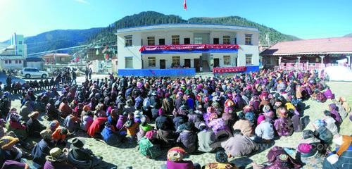 把講臺(tái)搬到院壩,擺上幾張藏桌,聽眾們席地圍坐在一起,頭頂上陽(yáng)光融融,會(huì)場(chǎng)上溫情融融,黨的十九大精神宣講就這樣帶著“泥土”氣息來到群眾身邊。
