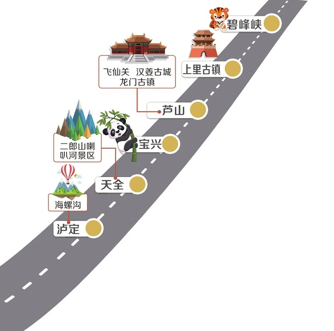雅康高速雅瀘段玩樂示意圖。