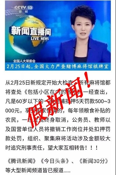 據(jù)介紹,“25日起全國(guó)嚴(yán)查棋牌室”的謠言最早出現(xiàn)在2014年,在此后幾年中,這條謠言改頭換面又反復(fù)出現(xiàn),而且出現(xiàn)的時(shí)間也有了規(guī)律,比如每年的5月1日(勞動(dòng)節(jié)長(zhǎng)假)前、9月1日(開學(xué))前、10月1日(國(guó)慶長(zhǎng)假)前等。