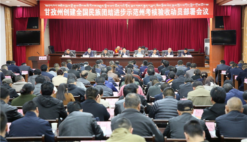 本網(wǎng)訊 近日,我州創(chuàng)建全國(guó)民族團(tuán)結(jié)進(jìn)步示范州考核驗(yàn)收動(dòng)員會(huì)在康定召開(kāi)。州委書(shū)記劉成鳴出席會(huì)議并講話(huà)。他強(qiáng)調(diào),全州上下要以黨的十九大、習(xí)近平總書(shū)記關(guān)于民族工作系列重要講話(huà)和省委書(shū)記彭清華來(lái)州視察調(diào)研重要講話(huà)精神為指引,準(zhǔn)確把握全州民族工作面臨的新情況新問(wèn)題,不斷加強(qiáng)和深化民族團(tuán)結(jié)進(jìn)步創(chuàng)建活動(dòng),不斷團(tuán)結(jié)凝聚起全州各族群眾力量,為同步全面建成小康社會(huì),打下堅(jiān)實(shí)基礎(chǔ),營(yíng)造良好環(huán)境,提供不懈動(dòng)力。州委副書(shū)記、州長(zhǎng)肖友才主持會(huì)議,州人大常委會(huì)主任李康、州政協(xié)主席向秋出席會(huì)議。