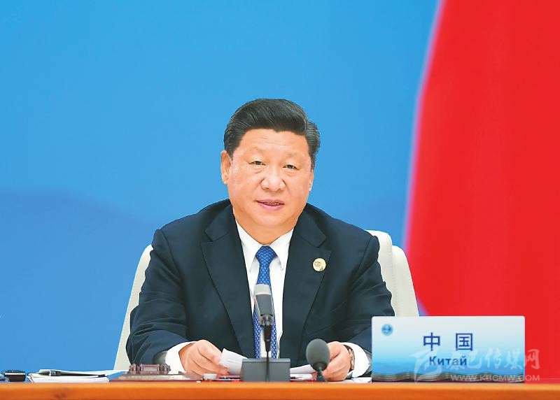 習近平指出,上海合作組織始終保持旺盛生命力、強勁合作動力,根本原因在于它創(chuàng)造性地提出并始終踐行“上海精神”,主張互信、互利、平等、協(xié)商、尊重多樣文明、謀求共同發(fā)展。當今世界,國際關系民主化已成為不可阻擋的時代潮流,安全穩(wěn)定是人心所向,合作共贏是大勢所趨,不同文明交流互鑒是各國人民共同愿望。我們要進一步弘揚“上海精神”,提倡創(chuàng)新、協(xié)調(diào)、綠色、開放、共享的發(fā)展觀,踐行共同、綜合、合作、可持續(xù)的安全觀,秉持開放、融通、互利、共贏的合作觀,樹立平等、互鑒、對話、包容的文明觀,堅持共商共建共享的全球治理觀,破解時代難題,化解風險挑戰(zhàn)。